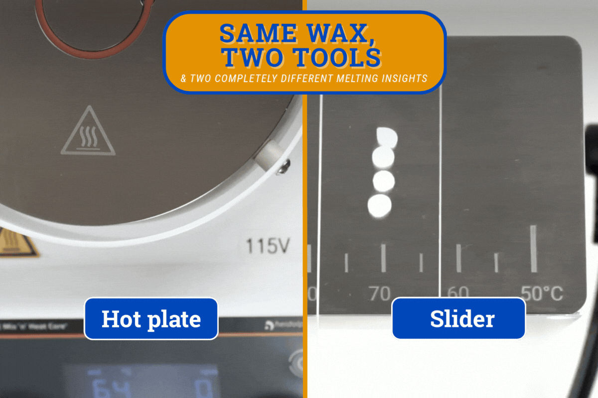 Unlike a standard hot plate, the Slider gives you continuous control across the entire temperature range, making melting point determination more practical and precise. If a sample melts completely, you can simply slide back to a lower temperature to see where it solidifies again.